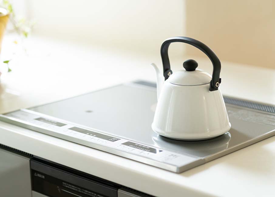 IHクッキングヒーターは火を使わない調理器具であり、オール電化のキッチンには欠かせない電気で動く調理器具です。IHクッキングヒーターは調理器具に直接熱を伝えることにより熱伝導率が高く、ガスのコンロと比べても遜色なくお使いいただけます。また、IHクッキングヒーターは火を使わないため、火災の心配がなく、調理中に発生する熱や湯気も少ないため、キッチン周りがより清潔に保てます。