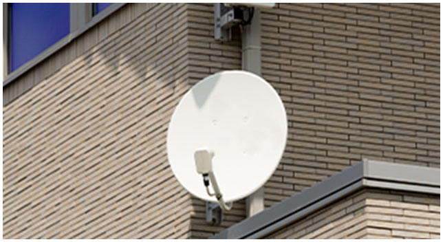 お住まいの方の受信設備がそれぞれ異なる中、全ての住戸が正常に受信できるよう共同受信アンテナを設置設定しなければなりません。加えて建物が高層になる程、風の影響がでやすく、戸建てに比べ増幅器や出力レベルの計算など高い専門知識や技術が求められます。アンテナは大規模修繕の対象にもなりますので、集合住宅のアンテナ工事はプロである松山の電気工事専門店 兵頭エアシステムにお任せください!