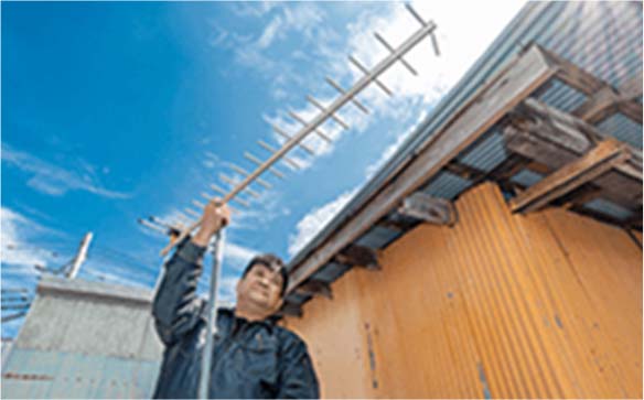 アンテナの不具合で電波障害が起きた場合、気候による影響や周辺環境の変化など、考えられる原因は様々ですが、多くの場合はアンテナの角度調整や補完ブースターの設置などにて対応可能です。アンテナの場所次第では、1時間もかからずすぐに修理できますのでお気軽にお申し付けください。