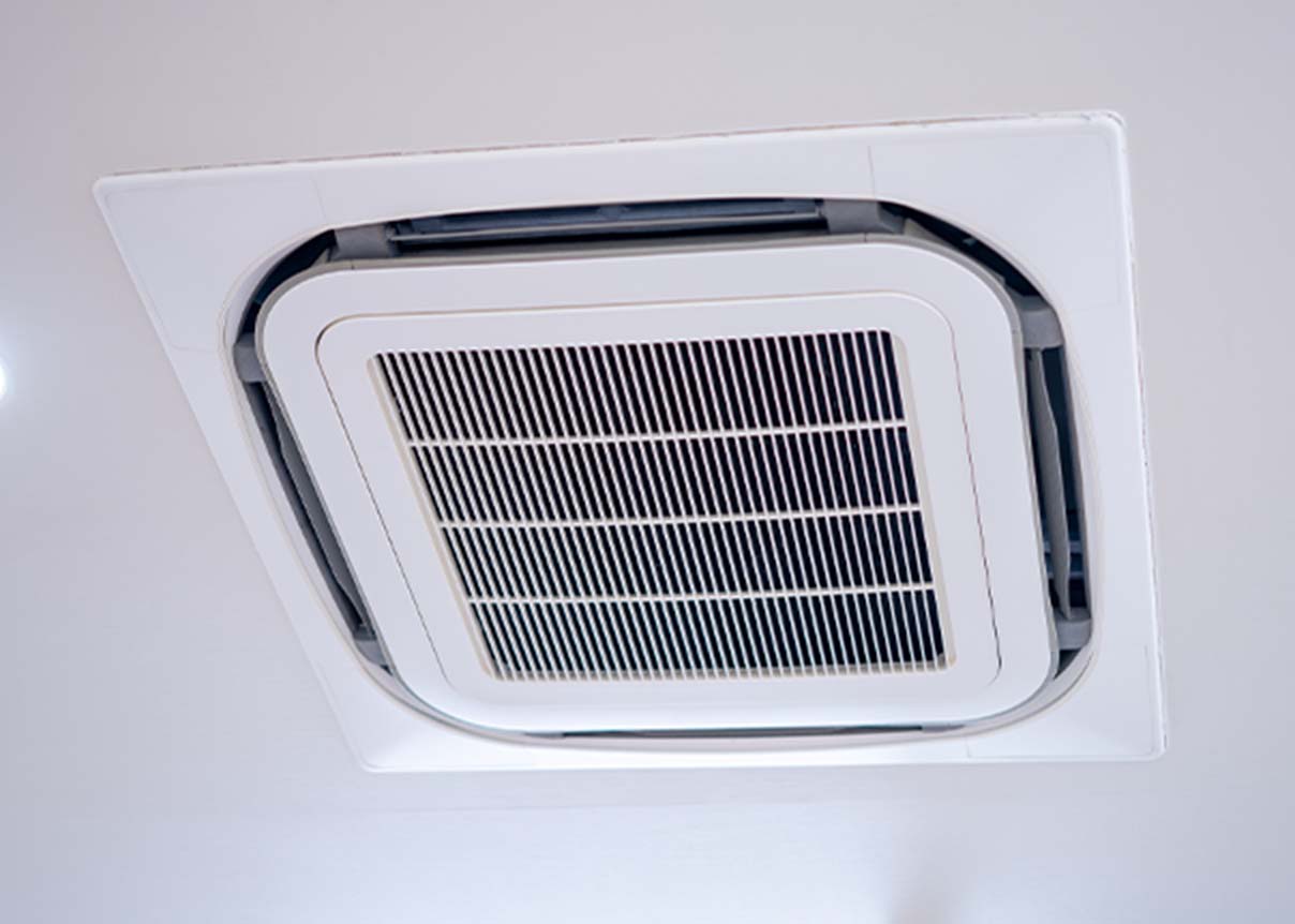 天井埋込み形の業務用エアコンは、室内機が天井に埋め込まれることでスペースの節約ができ、美観性が高いという特徴があります。また、空気の循環が良く、静音性が高いため、快適な環境を保てます。一方で、高い設置技術が必要であり、施工に専門知識が必要です。業者によっては対応できないものもありますが松山の電気工事専門店 兵頭エアシステムでは対応が可能となっております!