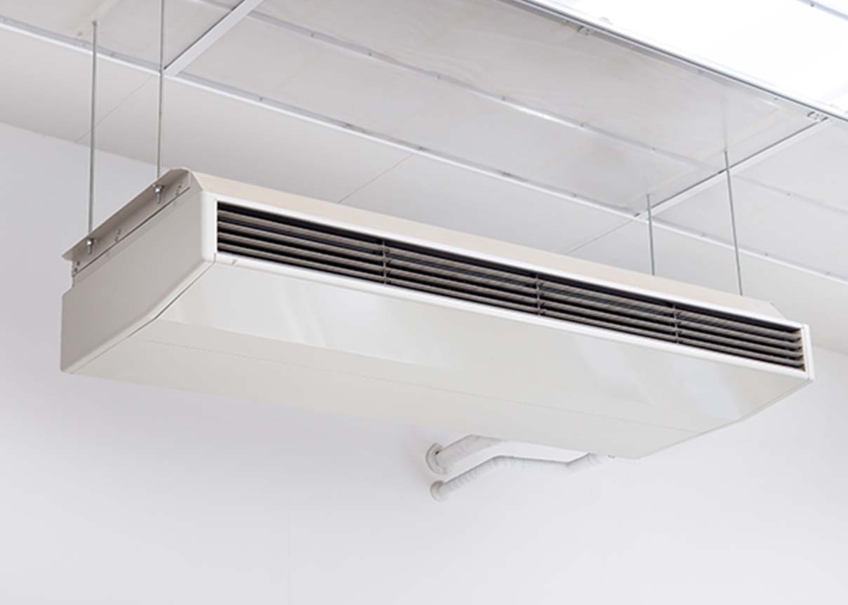 天吊形の業務用エアコンは、天井埋め込み形に比べて設置場所に制限が少なく、広い空間にも適しているため、店舗やオフィス、会議室などでよく使われている。また、天井に吊り下げられるため、壁や床を取らず、空間の有効活用ができる点も魅力的!メンテナンスもしやすく、フィルターの清掃や交換も比較的簡単に行えるため、衛生的な空気環境を保ちやすいです!